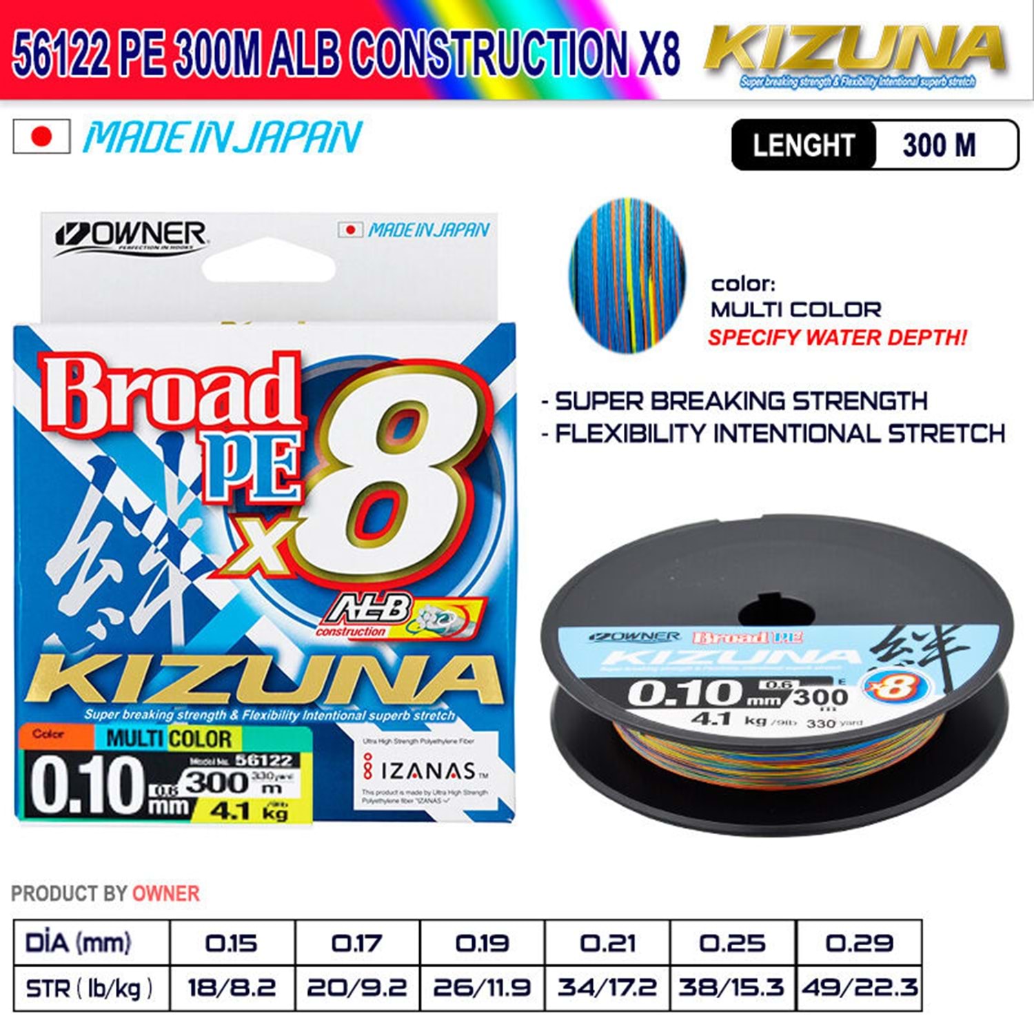 Kizuna 56122 Pe 300m Alb Construction x8 Multi Color